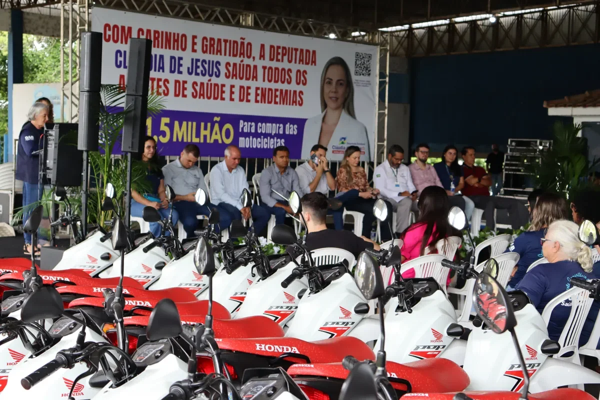 A deputada estadual Cláudia de Jesus realizou, em Ji-Paraná, a solenidade de entrega de 100 motocicletas e 96 capacetes destinados aos Agentes Comunitários de Saúde e Agentes de Combate às Endemias do município.