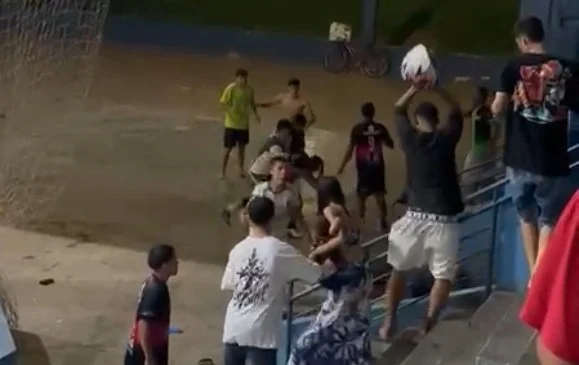 Uma partida de futsal realizada na noite de sábado (22), no Ginásio Gerivaldão, em Ji-Paraná, terminou em cenas de violência e extrema tensão. O confronto, que inicialmente ocorria de forma tranquila, virou caso de polícia após um jogador ser brutalmente agredido por quatro atletas do time adversário. O episódio foi registrado em vídeo e rapidamente se espalhou pelas redes sociais.