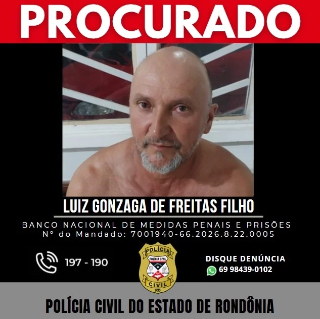 A Delegacia de Homicídios de Ji-Paraná informou que a Justiça expediu mandado de prisão preventiva contra Luís Gonzaga de Freitas Filho, investigado pelo homicídio de Augusto Marques de Souza.