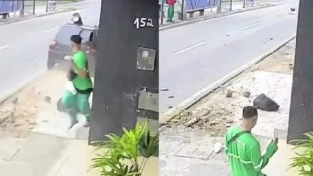 Agente de limpeza escapa de atropelamento e cena comove internautas. VEJA VÍDEO