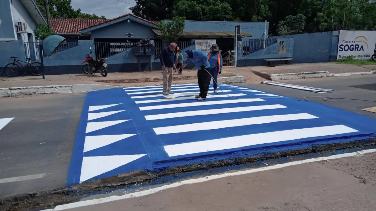 De acordo com o presidente da AMT, Oribe Júnior, a pintura iniciou pela faixa de pedestres em frente à Câmara Municipal de Ji-Paraná, na avenida 2 de Abril, no bairro Urupá (1º distrito). Na terça-feira (4) pela manhã, foi pintada de azul a faixa para próxima à Unidade Básica de Saúde (UBS) Juscelino Cardoso (2º distrito).