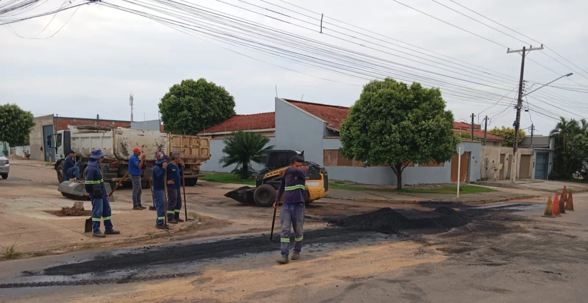As ações de tapa-buracos estão sendo executadas em todos os bairros, com apoio de máquinas e operários, garantindo melhores condições de tráfego e mais segurança para motoristas e pedestres.