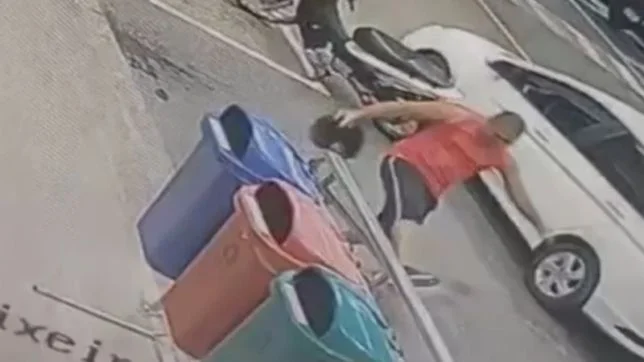 Nas imagens, é possível ver o motociclista chegando ao local e estacionando sua moto. O cachorro se aproxima do homem, aparentemente sem intenção de atacá-lo. Mesmo assim, o homem desce da motocicleta e dá um chute no animal, que fica gravemente ferido. Em seguida, ele entra no supermercado como se nada tivesse acontecido.