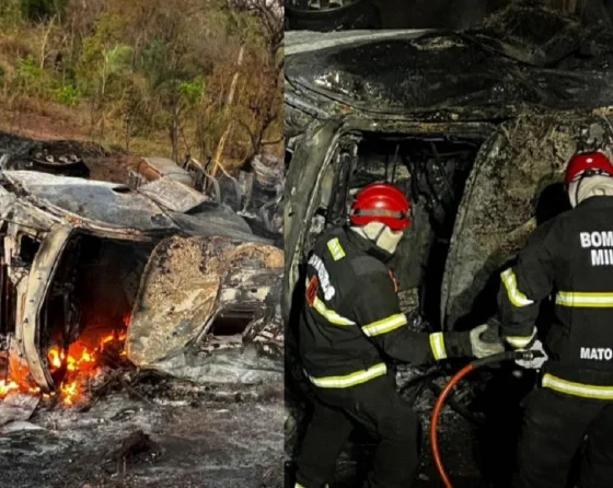 Um homem ainda não identificado morreu carbonizado após o caminhão que conduzia tombar e pegar fogo às margens da BR-174, em Mirassol D’Oeste (a 300 km de Cuiabá), no fim da tarde de sábado (20).