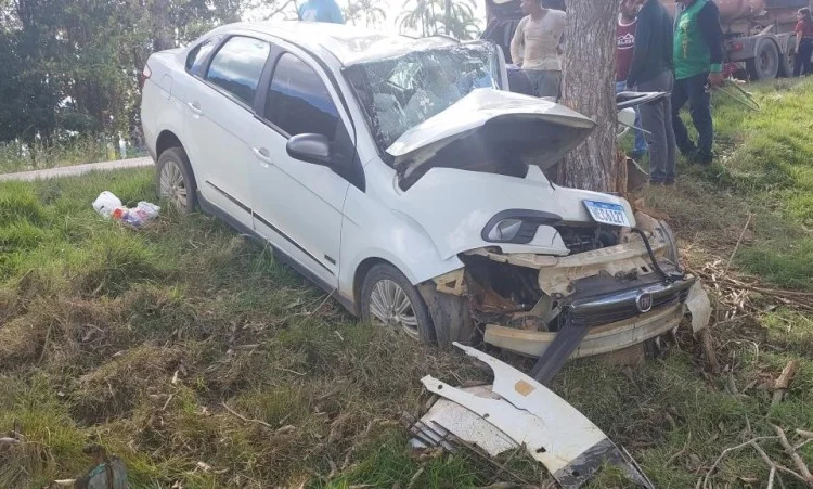 Segundo a Polícia Militar, a guarnição foi acionada por populares por volta das 14h45, relatando um possível acidente na rodovia. Ao chegarem ao local, os policiais encontraram um automóvel com a parte frontal destruída, após ter saído da pista e atingido uma árvore.