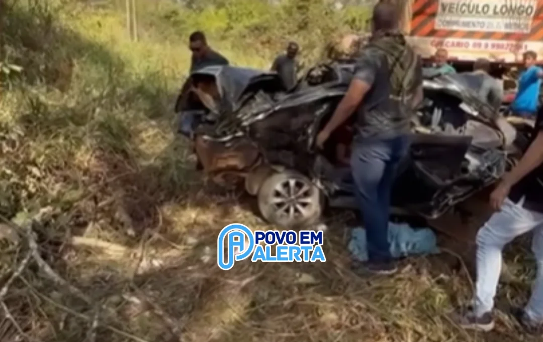 De acordo com as primeiras informações, a colisão envolveu um veículo de passeio e uma carreta. As circunstâncias que provocaram o acidente ainda estão sendo apuradas. Imagens feitas por testemunhas mostram que o carro de passeio ficou completamente destruído, evidenciando a violência do impacto.