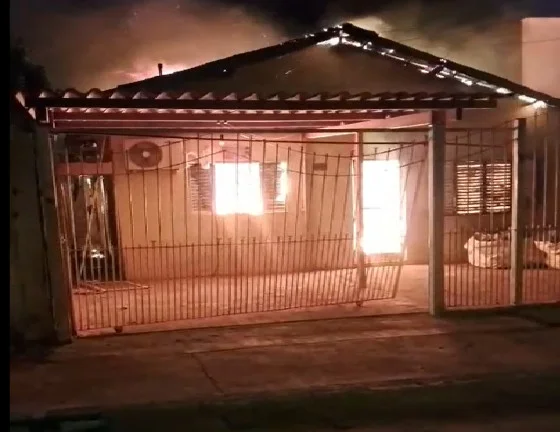 Vídeos mostram a casa em chamas e, depois, completamente destruída. Do lado de fora, policiais localizaram uma mochila com materiais inflamáveis e uma caixa de fósforos.