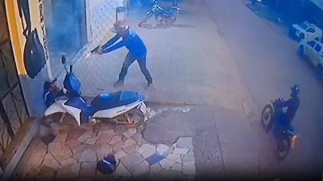 A câmera de segurança do hotel da vítima, mostra um dos motoqueiros descendo da garupa da motocicleta, efetuando vários disparos e em seguida, foge do local juntamente com o comparsa.