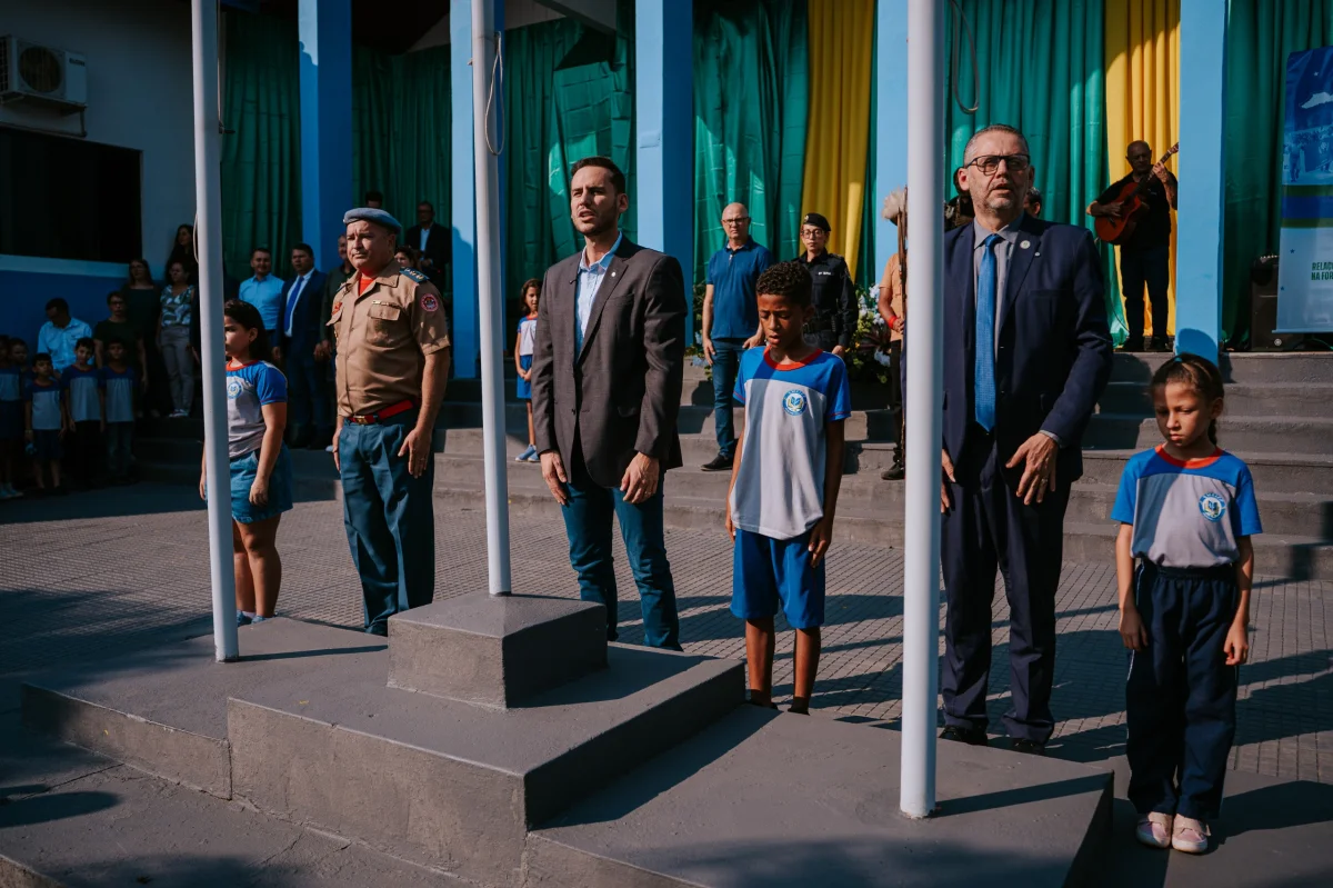 O prefeito Affonso Cândido (PL) e a vice-prefeita Marley Muniz (PL) acompanharam o ato. Em sua fala, o chefe do Executivo destacou a relevância da Semana da Pátria para reforçar os valores de cidadania e união.