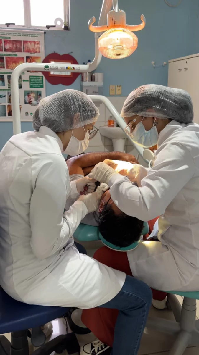 Durante o mutirão, foram realizados procedimentos de extração, restauração e limpeza, priorizando casos com maior necessidade de intervenção imediata.