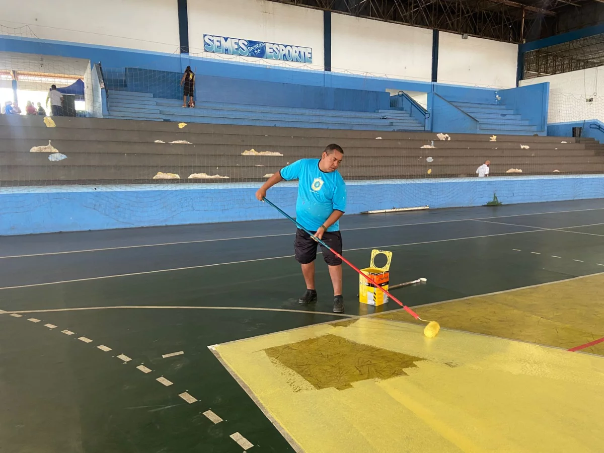 O trabalho de reforço na pintura e revitalização das quadras e arquibancadas contempla o Ginásio Gerivaldo José de Souza, o “Gerivaldão”, e o Ginásio Adão Lamota. Os serviços estão sendo executados pela própria equipe da Semes.