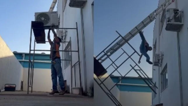 Um acidente assustador chamou atenção nas redes sociais na última terça-feira (19). Um técnico de ar-condicionado, enquanto realizava a instalação de um aparelho em uma residência, acabou caindo de cerca de dois metros, registrando tudo em vídeo que seria postado no TikTok.