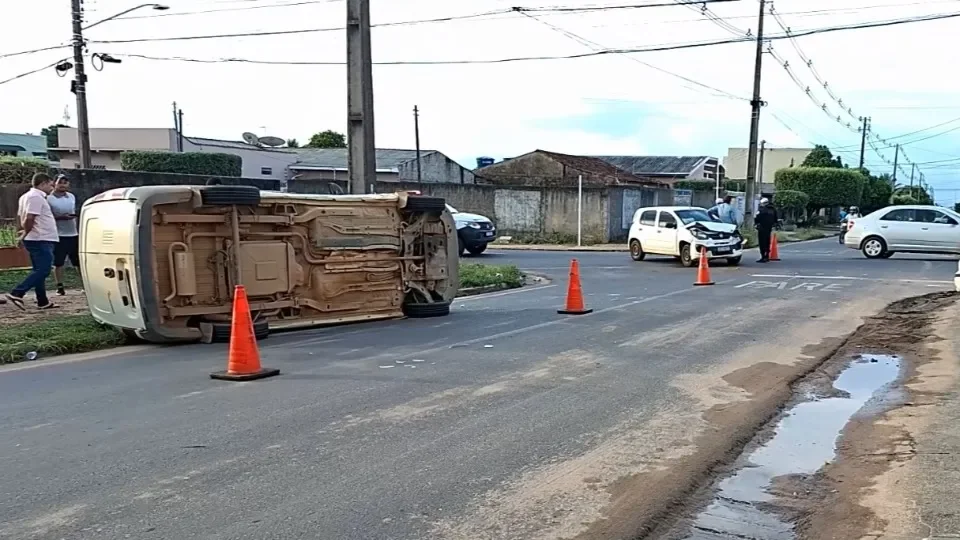 Ji-Paraná – Um acidente de trânsito foi registrado no final da tarde desta segunda-feira (17) no cruzamento da Avenida Aracaju com a Rua T-15, no segundo distrito da cidade. A colisão envolveu um Fiat Uno e um Fiat Fiorino, resultando no tombamento do veículo utilitário.