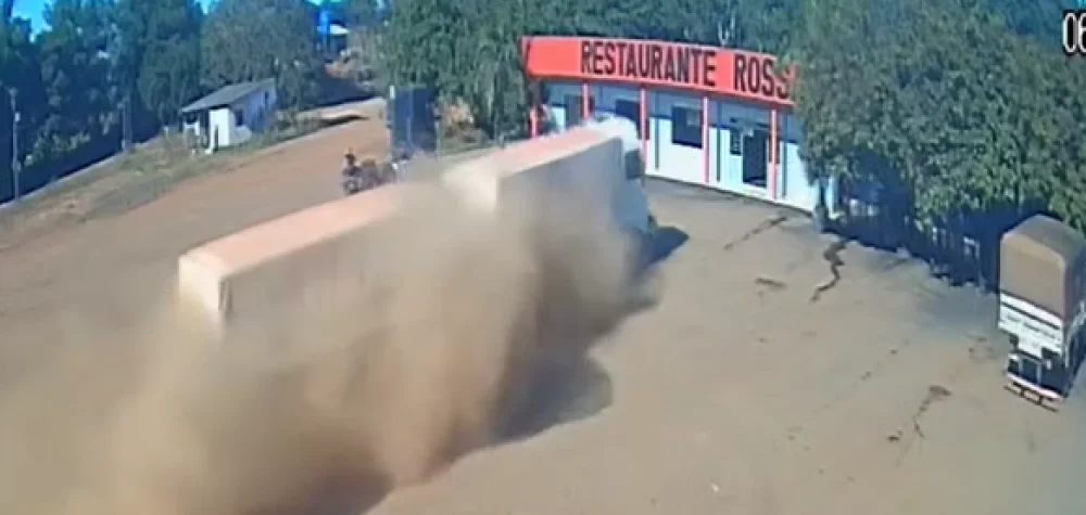Vídeo – Carreta perde o controle e atinge restaurante após colisão nas proximidades do ponto conhecido como Padronal