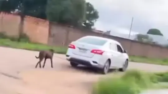 Um homem foi flagrado puxando um cachorro por uma guia presa a um carro em Porto Velho (RO). As imagens, que ganharam repercussão nas redes sociais na quinta-feira (21), ajudaram o Batalhão de Polícia Ambiental (BPA) a identificar o suspeito. (Veja o vídeo acima)