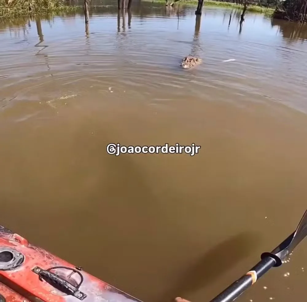 “Meu coração disparou. Eu não tinha nada pra me defender, era só o remo. Foi a primeira vez que aconteceu de um jacaré desse porte vir para cima, mas graças a Deus deu tudo certo”, disse.